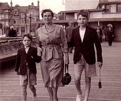 of house AND travels... She used to take Tony and myself all over the place... quite often - and quite literally - at the drop of a hat... Day trips to the seaside... with 'half a shandy' in the back of the bus - at one of the pub stops on the way back... A 'works outing' to Blankenberge and Brugge for five days... - where we peddled 'racing cars' on the sea front, and Grandma brought back four watches at £1 each, hidden in her headscarf... |