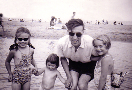 From the 50's into the 1960's... With two daughters born (and one to come), Joan & Jack moved from Leeds down to Lincoln in 1956, when Jack was promoted to Chief Clerk...I don't remember anything about their first house in Bramley - (but as they were only there for a year perhaps that's not surprising...!)... - However - the contrast between the two photographs on the right, is I think, rather interesting... The first photograph is one of Alex's 'Plate Camera Portraits', taken about 1955, outside our house in Seacroft, when Joan & Jack had just about moved to their first house in Bramley... [ For me it has the early 1950's written all over it, and it is a rather wonderful portrait of a time, as well as four people and part of the family...] The photograph below of Jack and the three daughters at the seaside, must have been taken around 1958... and it's as if the 1960's are somewhere in the air over the ocean...! It's partly just the difference in the 'style' of the photography I know... but I also think there are other factors at work... - and it's one of the things that makes exploring the old family photo box such an interesting experience...! I spent quite a few summer holidays down at the house in Lincoln (although I don't remember the arrival of the third daughter - Isobel - in 1957...) What I do remember however is: That the two buses that you could catch back to the house from town were destined for either Hykeham Road or Doddington Road... And that Jack and I dug up some very large radishes in the garden one time... And that the train line from Lincoln to Skegness followed the banks of the River Witham for a long way out of town, across a flat and farmland landscape... I used to stand in the corridor by an open window, and sing ''Last Train to San Fernando'' (by Johnny Duncan and the Bluegrass Boys)... |